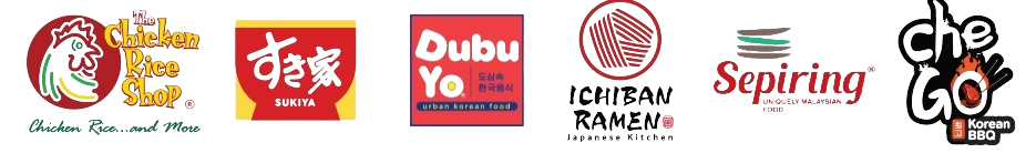 (The Chicken Rice Shop, Sukiya, DubuYo, Ichiban Ramen, Sepiring, and Che Go).
