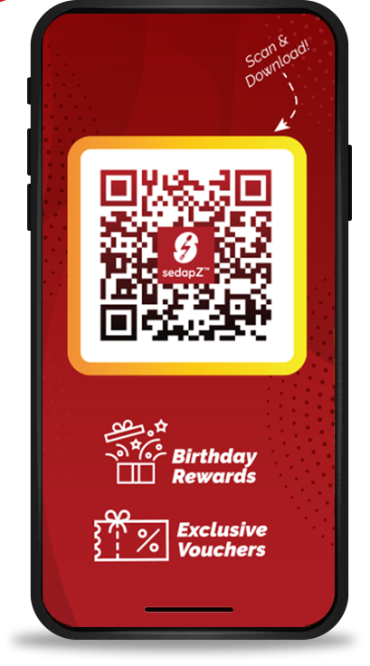Download the app and register your sedapZ account to get started.